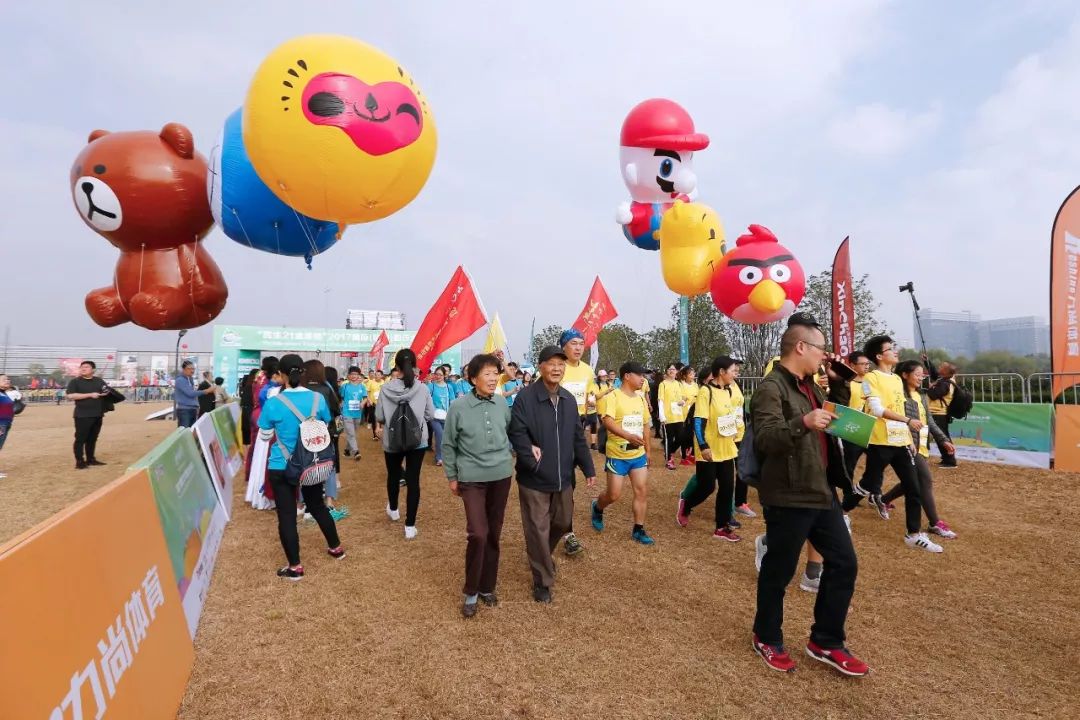 动漫彩蛋,展示杭州动漫一路精彩 除了特色动漫方阵,还有更多精彩动漫元素点亮毅行大会。 起点处天上地下齐打CALL!不仅有可爱人偶、华丽COSER互动助威,更有Q萌的动漫气球领航出发,为毅行队伍更添一抹亮色。