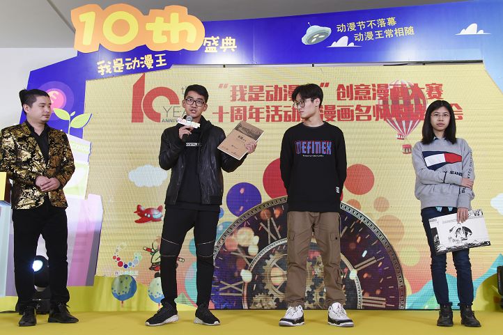 2016年“我是动漫王”十强选手陈一格,特意送来了祝福视频。这个曾经拜在漫画家巴布门下的男孩,现在已经赴日本留学系统学习漫画,他说:“首先我要谢谢巴布老师对我的指导,我想对师弟师妹们说,画画这件事,一定要坚持,坚持才会有收获。”