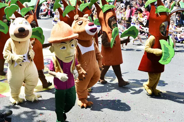 《蓝精灵》、《冰雪奇缘》、《美国队长》…… 正如国际动漫主题曲《动漫天堂》所唱:“全世界相约在这里吧,多美妙动漫的天堂,手牵手一起去星际遨游,沿途一路好风光……” 第三篇章《梦想未来》,则是以《情满西湖》节目圆满结束本届动漫彩车巡游。