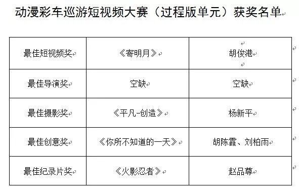 彩车巡游首届短视频大赛结果出炉 经过紧张激烈的初评、网络投票、终评首届短视频大赛结果已经新鲜出炉啦~本次大赛有近百名选手报名参加,长枪短炮聚集现场,颇为壮观。经过评选,共有31件作品入围网络展播投票。参与评审的评委们表示“参赛作品创作用心、充满创意、画面讲究”短视频大赛给予大众一次参与分享表达自我的机会一次多角度展示彩车巡游精彩度的平台最后,经过评委们的激烈讨论确定了首届彩车巡游短视频大赛的获奖名单恭喜获奖团队期待明年更精彩的作品! 2019年09月11日