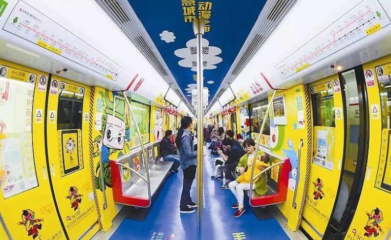 在杭州,有专门用动漫元素装饰的小区外墙,主要道路的上千个箱体也用动漫来包装,坐地铁、坐公交,甚至机场里都能和动漫相遇。