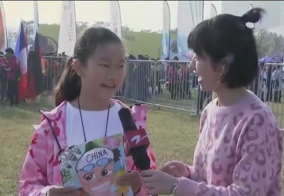 其中一位西湖明信片大赛获奖者——五年级的杜俊莹小朋友,还来到现场,接受了记者采访。她手持画作,中间画的是傅园慧,因为她很喜欢傅园慧自信乐观的样子,特别是在比赛时说出的那句话:“使出了洪荒之力”,同时借傅园慧的画向大家传递一种积极向上乐观的精神。