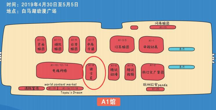 A1馆 动漫品牌馆。除了十年如一日的央视动画、浙江广电集团、中南卡通外,还有国内外大咖,如日本动漫文化振兴机构组团、巴西动漫联盟组团、迪士尼等。 今年动漫节的一大亮点,就是美国迪士尼首次参展!他们将在A1馆出现噢~带来全球著名的漫威漫画80周年的精品,与中国漫迷共狂欢!