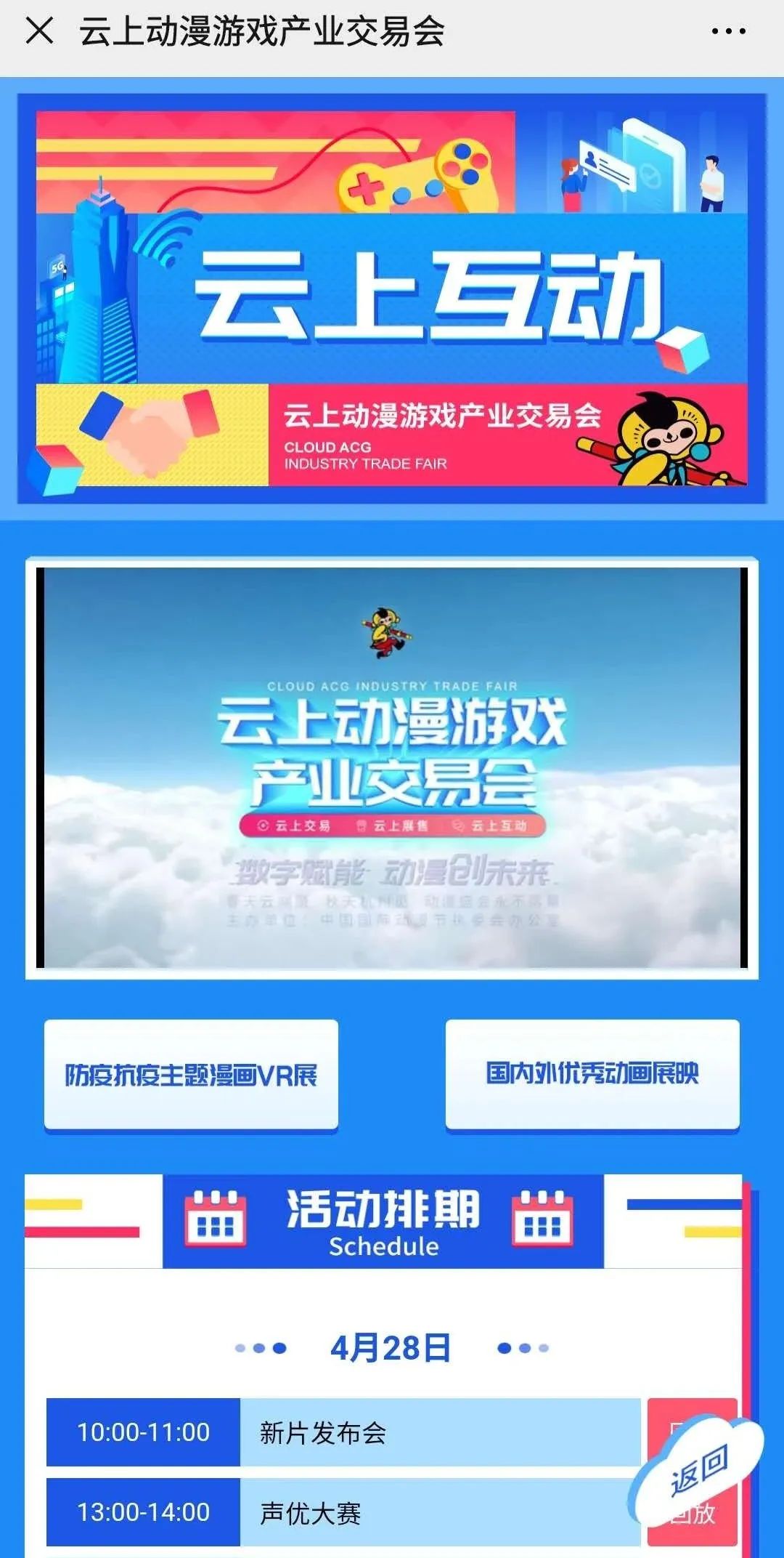“云上动漫游戏产业交易会”平台涵盖三大板块共十六项活动且兼容PC端和移动端,轻点键盘即可一站式进行洽谈交易、展示销售、娱乐互动。