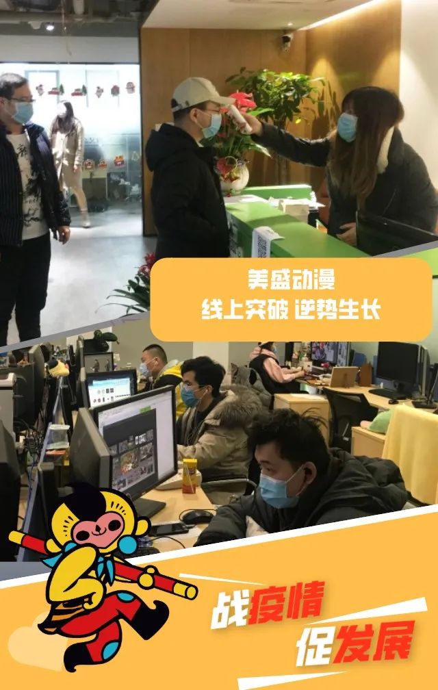 2月15日,美盛动漫吹响了复工的号角。为了确保复工安全,在批准复工前,公司就提前储备了口罩、消毒水、酒精、医用棉球、额温枪等防疫物资;复工后,公司又实施了多项防疫措施。 抓好防疫的同时,美盛动漫集成各类文化衍生的线上生态,品类横跨有IP动画、迪士尼授权、派对盛装等动漫衍生品。为减少疫情带来的影响,公司迅速提升产能,企业调整经营方向,顺势加强突破线上业务,化危为机,争取逆势生长。