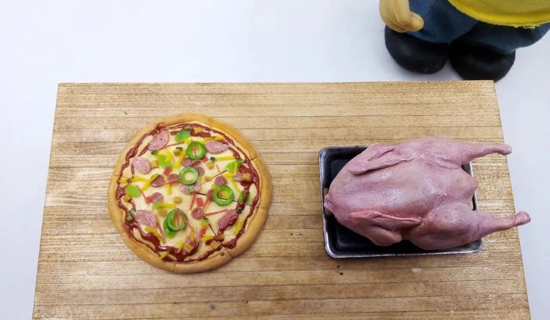▲这几个微缩的冰冻鸡、披萨和鱼,是不是看起来就像真的一样?你能看出是用粘土制作的吗?