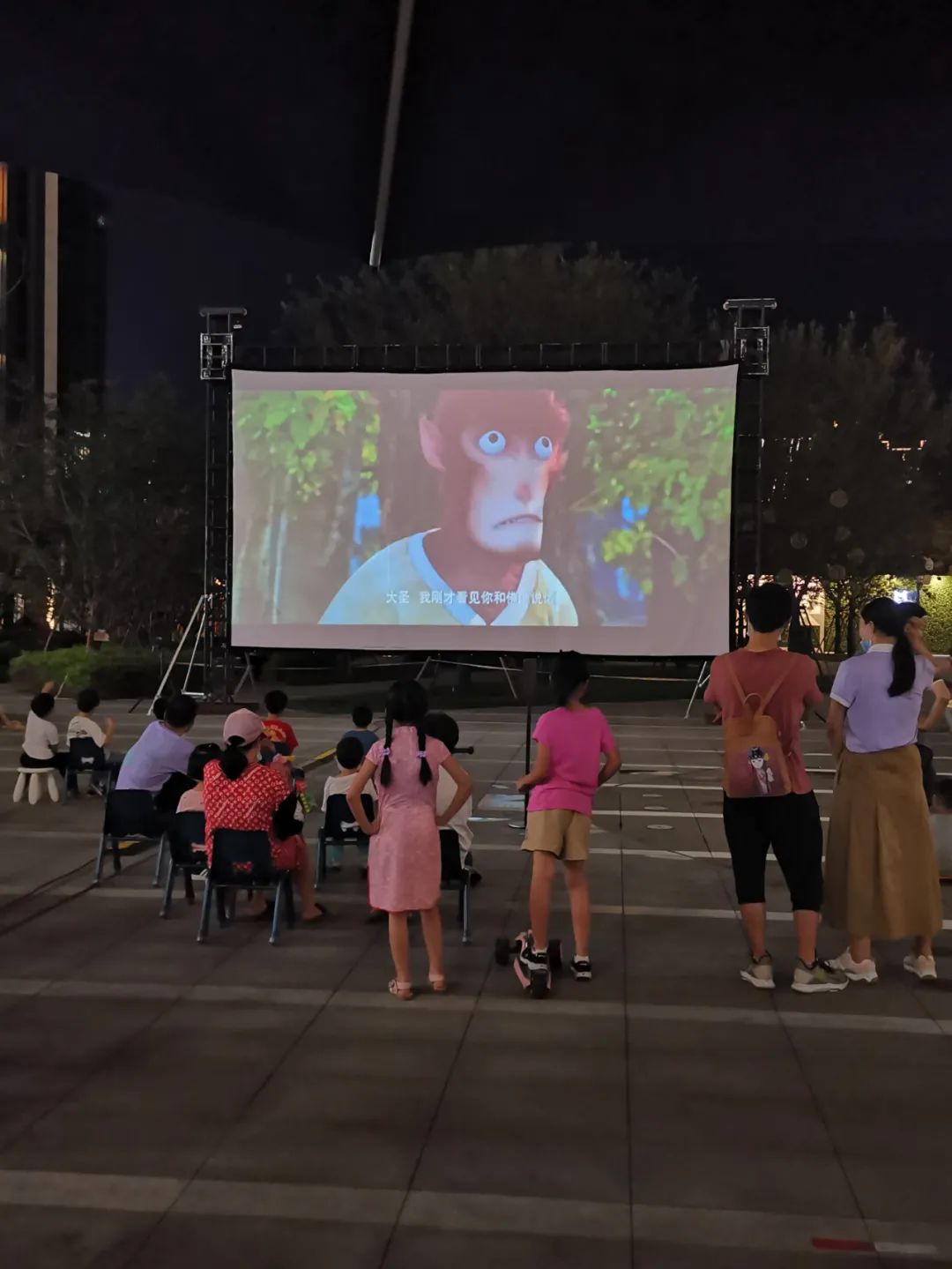 “这个放映效果还不错的,眼睛看着很舒服。”何阿姨家就住在附近,吃完晚饭出来散步,便正好凑上了露天动画电影放映,“今天家里两个小孩儿都不在,不然也会带他们过来看。”