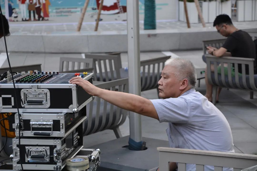 几乎同一时间,来自杭州市电影公司的放映员们也带着设备来到了场地,开始忙活起来。“昨晚一直从九点忙到凌晨两点。”放映员邢大伯擦了擦脸上的汗水说道。据了解,邢大伯从事电影放映这门工作已经四十多年,从16岁入伍开始,现在已到了退休的年纪。他表示,“这一辈子啊,就‘电影’一个爱好!”