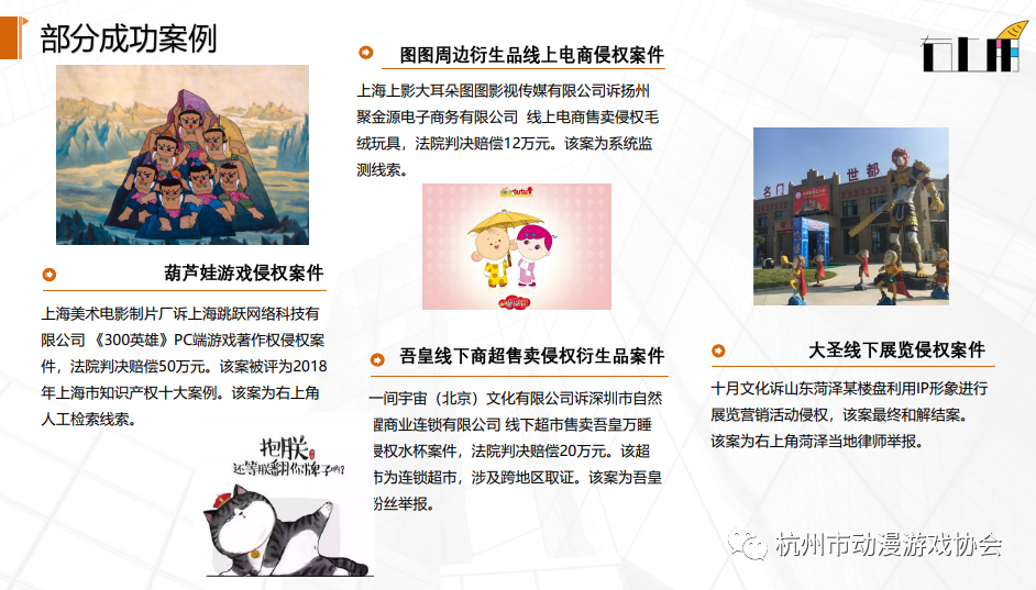 杭州市动漫游戏协会培训课程开课啦!!! 杭州市动漫游戏协会培训课程开课啦!!!报名时间有限,想学习的小伙伴赶紧来看看哟!▽开课时间2020年9月10日 15:00课程内容如何让动漫企业的人物造型著作权期限达到100年本期分享人陈贞健百一知识产权及右上角知识产权平台创始人△上海右云信息技术有限公司处理成功案例- END -欢迎识别以下二维码进入协会专属小程序 2020年09月07日