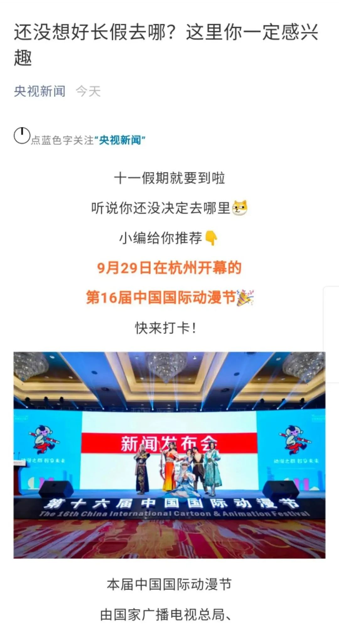 跟着总台央视入圈,动漫节看“浙”里! 第十六届伟德安卓版下载官网安装开幕啦!近几日,国漫君发现在央视刷到了好多国漫的身影!▽无论是在电视里9月28日“经济信息联播”(来源:央视影音)9月29日“朝闻天下”(来源:央视影音)9月29日“新闻直播间”(来源:央视影音)▽还是在票圈里(来源:央视新闻)中央广播电视总台是首次以主办方身份参与举办,必将进一步提升伟德安卓版下载官网安装的权威性和传播力、影响力。在央视看动漫节也太酷炫了! 2020年09月30日