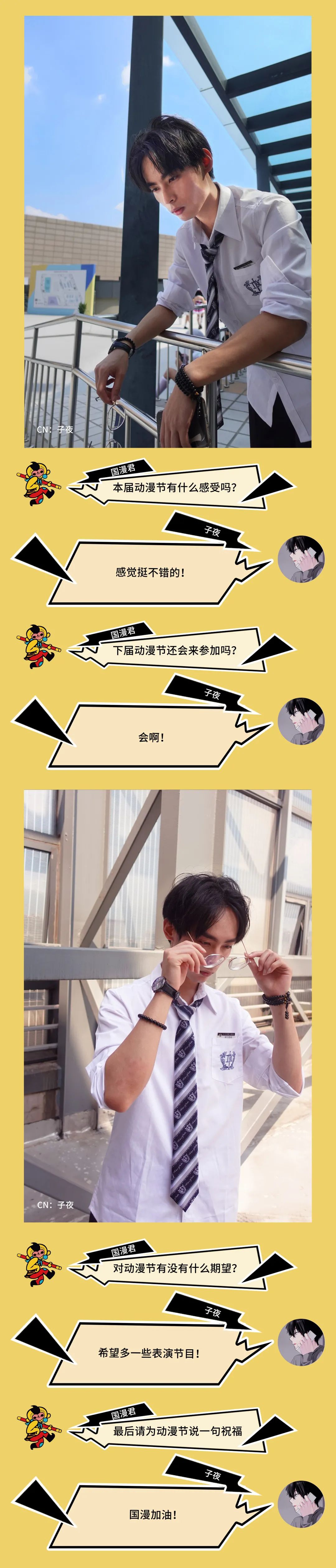 Day3 | 双节假期第一日!来pick你心中的今日最佳吧! 今天是国庆假期的第一天,动漫节也迎来了人流高峰。现场精彩多多,快来看一下今天的街采吧!除了街采外,国漫君还给大家带了许多现场照片。到10月4日动漫节结束还有三天,还没来的小伙伴们要抓紧咯!明天我们继续不见不散! 2020年10月01日