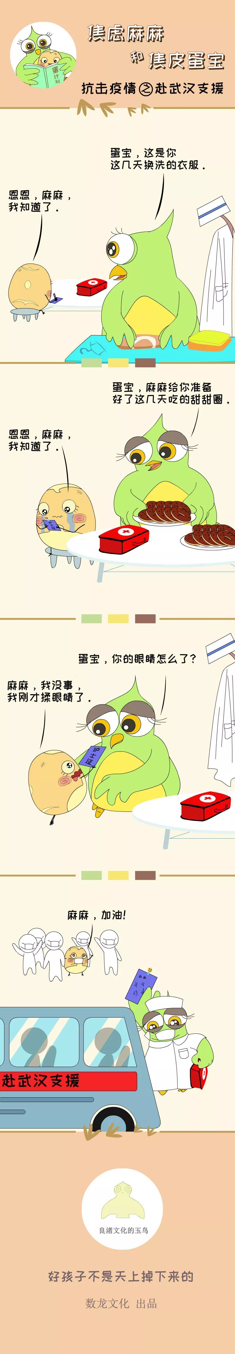 关于数龙文化 杭州数龙影视文化有限公司,是一家从事中国原创动漫IP孵化和运营的创新型动漫公司。 旗下拥有良渚动漫IP:热情傻缺的大嘴渚渚、爱吃爱睡爱做白日梦的萝卜特、 焦虑的超级宝妈、闹心的焦皮蛋宝、搞怪耍坏的怪兽目目、充满灵气的玉龙苞伢仔等。 “最美逆行者”们的眼神充满疲惫 却含着坚毅 时时刻刻都在奋战 让我们为他们呐喊加油 ▼ 鲜漫文化