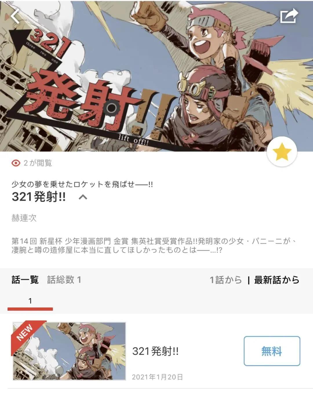 “新星杯”金奖作者赫连茨原创短篇漫画《321发射》登陆日本主流杂志《JUMP+》 近日,翻翻动漫旗下新人作者赫连茨原创短篇《321发射》登陆日本主流漫画杂志《JUMP+》。该作在2020年第14届新星杯故事型原创漫画大赛中获得最佳少年漫画金奖与集英社奖双料大奖。 2021年01月22日