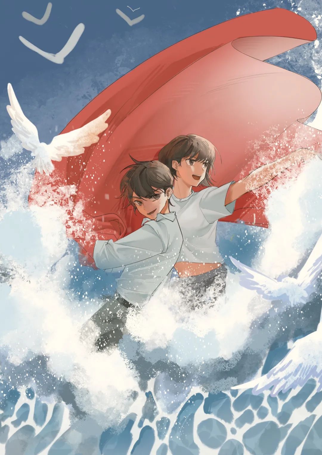 该作品生动描绘了中国共产党从嘉兴南湖红船出发历经百年沧桑巨变的伟大征程,画面中敬礼的少先队员则代表了祖国的未来。从小小渡船到超级航母,我们必将奔赴下个百年的星辰大海,实现中华民族伟大复兴的中国梦。