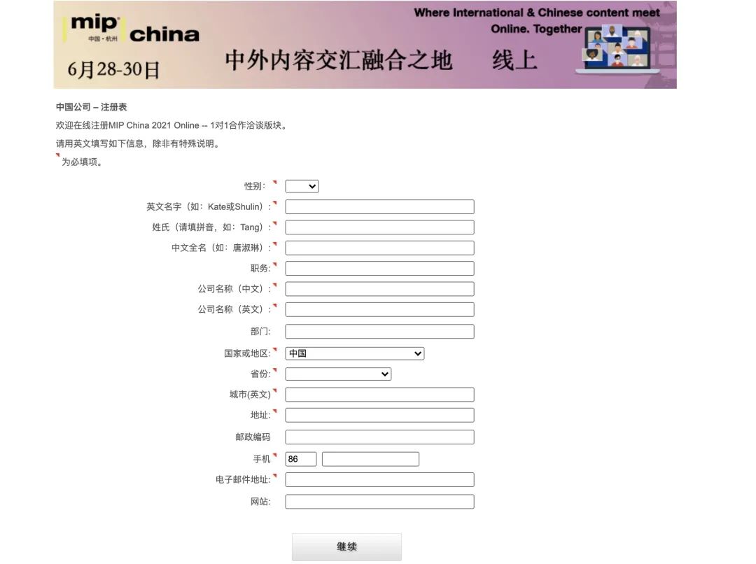 注册时间: 5月1日-6月2日 注册地址: https://ali.infosalons.com.cn/reg/mip21june/registerformcn/step1.aspx *截至目前,已有100+位中外买家确认参会,其中三分之二为境外买家,复制以下网址至浏览器打开可查看详细买家名单。 https://www.mip-china.com/content/dam/sitebuilder/rm/mip-china/2021/pdf/mipchina-2021-confirmed-buyers-commissioners.pdf.coredownload.189877723.pdf