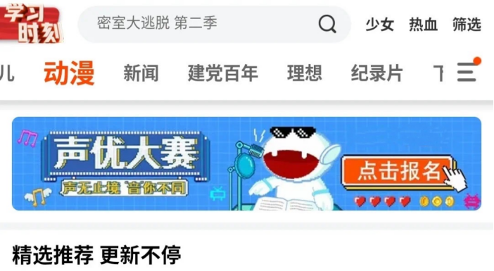 点击进入“动漫频道”后, 下滑找到声优大赛焦点图, 即可进入报名页面👇