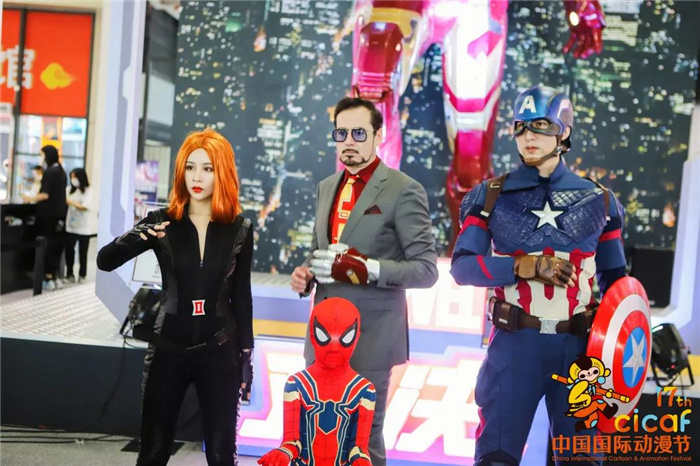 钢铁侠、美国队长、黑寡妇和Q版蜘蛛侠 也纷纷来到现场助阵↓
