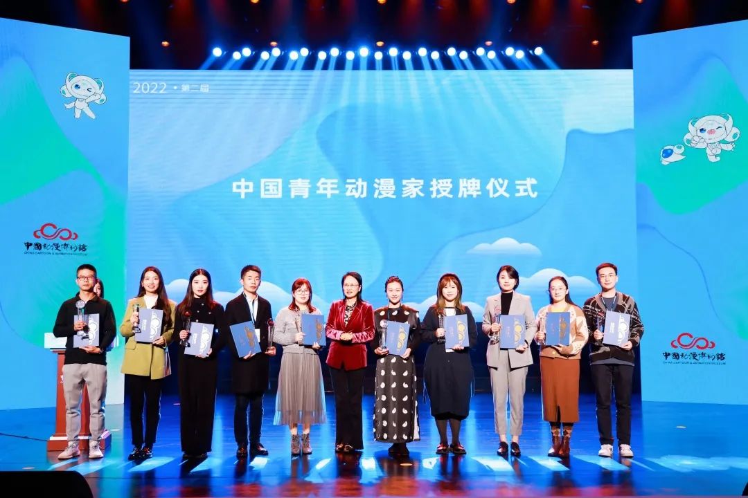 第二届中国青年动漫家授牌 (因疫情原因,省外青年动漫家未能亲临现场领奖) 虞嘉尧、史弘毅、王栋梁、董佳佳、王裕民、沈从立、高立盛、张振兴、陈旻、岑佳成等10人获“2022第二届中国青年动漫家提名奖”。