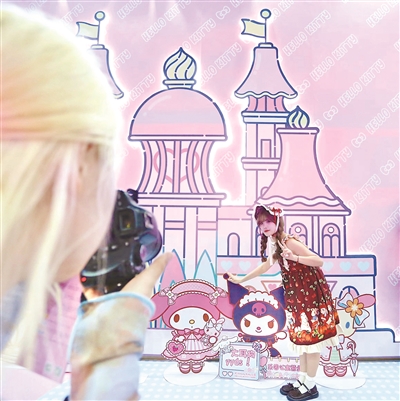 去年,观众在Hello Kitty展区打卡。记者 江玥 摄