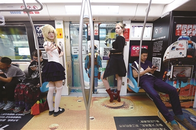 进入“动漫时间”的杭州,二次元氛围拉满。街头巷尾、公交地铁,你随时可能偶遇喜欢的动漫角色。当那些经典IP里的经典形象,跨越次元的界限,出现在现实场景,你的DNA是不是动了? 在地铁免费接驳专线 偶遇火星专列 “这辆地铁,好像有点不太一样。”昨天上午11点左右,一个戴着蓝色假发的女孩上了地铁5号线,上下左右打量了一圈,找了个空位坐下来。但没过几分钟,她又起身走到旁边,和车厢壁上正在“伸手打招呼”的宇航员玩起了击掌。 白校服、红领结、格子裙,看过《魔法少女小圆》的漫迷大抵一眼就能看出,这身装束cos的是美树沙耶香,一个性格活泼且富有正义感的魔法少女。 动漫节期间,杭州开通了3条地铁免费接驳专线。其中,滨康路(地铁1号线、5号线)、人民广场(地铁2号线、5号线)、聚才路(地铁5号线)3个站点,可以换乘动漫节P7停车场的免费接送专线。 刚好都在“九千光年”号火星专列所在的5号线上。 一个多月前,为了配合全新的公共新闻产品“九千光年”上线,都市快报·橙柿互动在地铁5号线定制了一辆同名火星专列。它连接了年轻人聚集的滨江、余杭,穿过京杭大运河,驶向一个叫“金星”的站点。 美树沙耶香是猫猫最喜欢cos的动漫角色之一,21岁的她和朋友约在聚才路站碰头,准备换乘接送专列前往动漫节现场。“就整活呗,拍视频、集邮(在动漫文化中指与喜欢的动漫角色或同好合影)。” 看到车厢内火星的场景,她开玩笑地表示:“到底是杭州,动漫节期间连地铁车厢都玩起了Cosplay。”