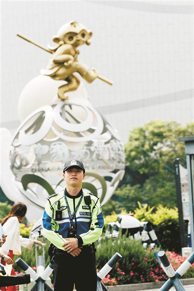 张昊天 动漫场馆周边执勤交警 动漫盛会带来的车流、人流,都会给周边道路的交通管理带来一场考验。今年,杭州交警每天投入近百名警力,全力做好场馆附近的交通疏导工作。 早上7点,滨江交警大队长河中队民警张昊天准时出现在白马湖路上。27岁的他站在路口,不停指挥来往车辆。这是他加入警队后“参加”的第四届动漫节,“每年见证动漫节的举办,还是挺有意义的。” 根据历年经验,交警部门会提前对场馆附近多个重点路段进行布置。比如张昊天所在的白马湖路江虹路口,每天都会有十余名警力轮流执勤。“从这个路口进入场馆的车流量、人流量都非常大,我们两边都得兼顾。”张昊天说,每天早上7点到岗准备,一天的工作结束后还要复盘,以便完善第二天的工作。 作为一名“95后”,张昊天也是个动漫爱好者。最近几年,虽然自己没时间逛,但听着走出场馆观众的聊天,他也对里面的展位略知一二,“印象最深的肯定是咱们自己的公安展区,那杯‘警茶’多火啊!” 今天是六一儿童节,根据预判游客量较之前可能成倍增加。对此,张昊天和同事们做好了准备,届时路口流动警力会继续增加,同时会视情进行分流等临时管理措施,保障周边交通正常运转。 每天除了疏导交通,张昊天也会面对大家各种各样的提问,偶尔还需要应对一些突发状况。好在张昊天专业能力过硬,且之前多次在演讲比赛中获奖,本身就具备优秀的沟通能力,处理起来也是游刃有余。“在做好本职工作的前提下,尽自己所能帮助大家,这是我们一直在做的。”