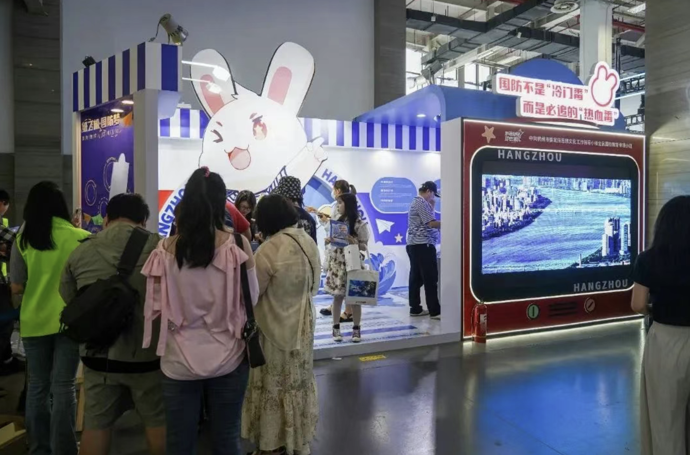 国防教育动漫展区首次亮相动漫节,凭借其独特的魅力脱颖而出,迅速成为全场瞩目的“顶流”展位之一。 走进该展区,观众既能深入学习丰富实用的国防知识,增强国家安全意识,又能与造型可爱、萌态十足的“杭州国防兔”来一场亲密互动,在轻松愉悦的氛围中感受国防教育的独特魅力。