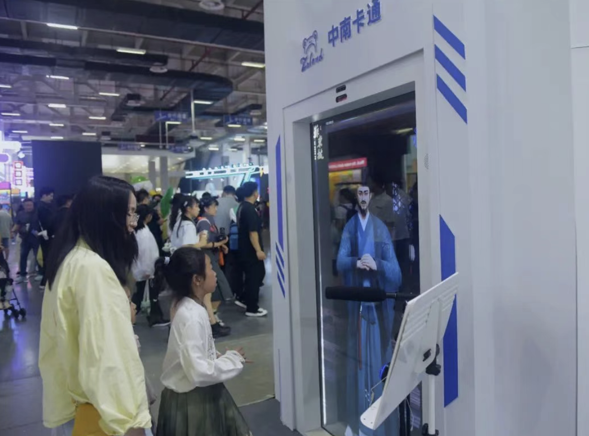 现场,《天眼》开播二十周年主题装置带来一波波“回忆杀”,观众们纷纷合影留念;《钱王传奇》的COSER让参观者近距离感受当年吴越王的风采,表演互动迎来阵阵喝彩。 根据中南卡通原创动画《苏东坡与杭州的故事》研发的“苏东坡”AI数字人受到关注,现场观众纷纷与这位千年文豪“时空交流”:东坡先生您最喜欢您的哪一部作品?您的爱好是什么?可否用我的名字为我作首诗歌?……苏东坡都一一回答,“有求必应”。