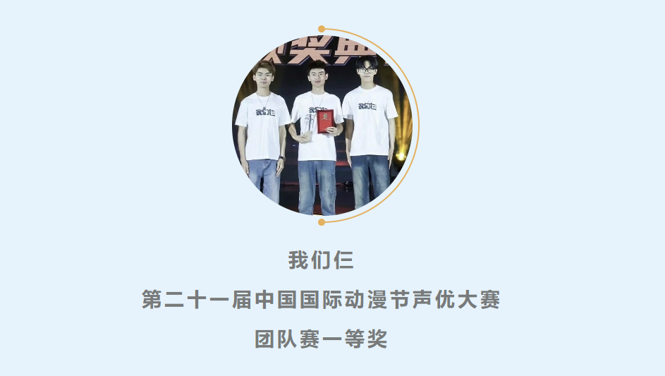 A ![]() 这次大赛为我们团队赢得了迄今为止最具分量的一座奖项,它不仅是对我们专业能力的认可,更成为了我们配音道路上的一个重要里程碑。对我这个队长来说,这段经历彻底坚定了我要继续走下去的决心。说实话,在此之前我也经历过很长一段自我怀疑的时期——没有奖项认可,也几乎没有接到过配音工作,内心难免迷茫。但这次获奖像一束光,照进了我刚刚起步的职业生涯,让我真正建立了自信,明确了启航的方向。 这段经历重新点燃了我对声优事业的热爱。它不再只是年少时的一种向往,而成为了我渴望全力以赴的职业目标。大赛中评委老师们的肯定,以及其他优秀选手带来的启发,让我看到了自己未来更多的可能性。我开始坚信,只要坚持努力,我也能成长为一名真正的职业配音演员。 ![]() 更重要的是,声优大赛为我们这样的新人提供了一个无比宝贵的成长平台。它不只是竞逐奖项的赛场,更是我们打开行业视野、找准自我定位的窗口。从备战到登台,从同行之间的切磋到前辈的指点,每一个环节都让我们获益匪浅。这段经历让我深刻意识到,大赛可以是配音人职业生涯的理想起点——它给予我们的不只是一纸证书,更是面向未来的信心、资源和方向。 | ||||||||