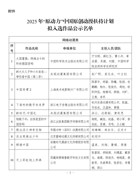 2025年“原动力”中国原创动漫扶持计划拟入选作品公示 |