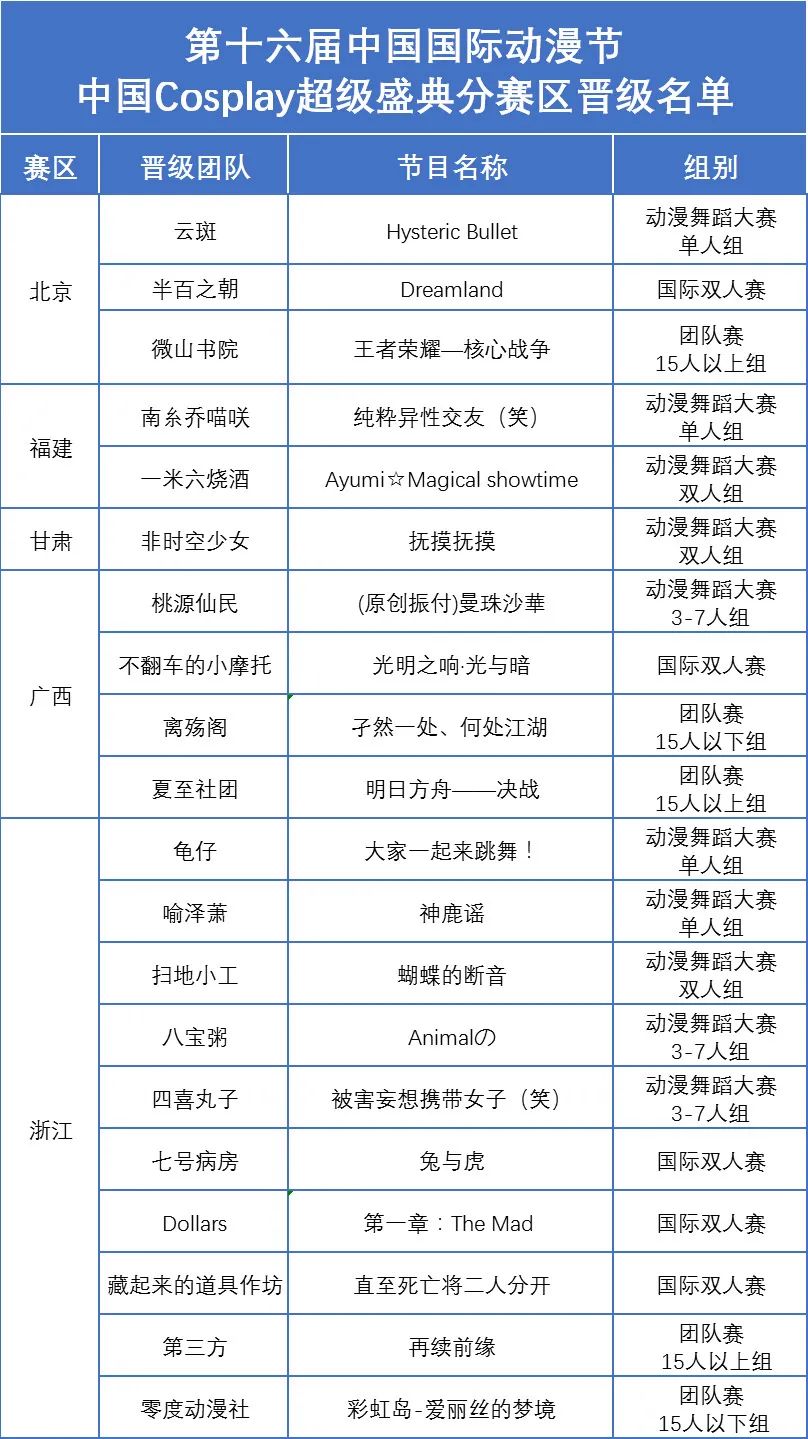 中国COSPLAY超级盛典总决赛晋级名单揭晓,白马湖见!